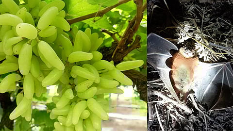 Bats Destroyed The Vineyard: सांगली जिल्ह्यातील मिरज तालुक्यातील लिंगनूर येथे वटवाघळांनी (Bats) द्राक्ष बाग फस्त केली आहे. अवधूत आणि शिवदूत शंकर माळी या २०-२२ वर्षांच्या भावंडांनी जीवापाड वाढविलेली आणि पिकलेली द्राक्षबाग (Vineyard) वटवाघळांनी एका रात्रीत फस्त केली. यामुळे सुमारे सात लाख रुपयांची द्राक्षे नष्ट झाली आहेत. या दणक्याने हाता-तोंडांशी आलेला घास वटवाघळांनी फस्त केल्यामुळे तरुण शेतकरी कोलमडून गेले आहेत. (Sangli Latest News)