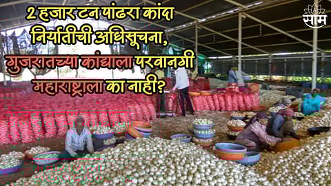 कांदा निर्यातबंदीच्या प्रश्नावरुन शेतऱ्यांची ओरड असतानाच केंद्र सरकारच्या एका निर्णयावरुन महाराष्ट्रातील शेतकऱ्यांनी संताप व्यक्त केलाय. गुजरात राज्यातील पांढऱ्या कांद्याला निर्यातीसाठी परवानगी देत वाणिज्य मंत्रालयाच्या विदेश व्यापार महासंचालनालयाने अधिसूचना जारी केली. त्यानुसार दोन हजार टन पांढऱ्या कांद्याची निर्यात होईल. त्यासाठी गुजरात राज्यातील मुंद्रा, पिपावाव आणि नाव्हाशेवा म्हणजेच जेएनपीटी बंदरातून ही निर्यात करण्याबाबत स्पष्ट करण्यात आले आहे.