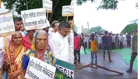 वर्धा : लोअर वर्धा धरणातील बॅक वॉटर शेतकऱ्यांच्या शेतात (Farmers) गेल्यामुळे हाताशी आलेले शेतकाऱ्यांचे पीकं सडून गेली आहेत त्यामुळे शेती पिकांवर 80 टक्के खर्च झाला आहे तो तर पाण्यात गेलाच पण मुलांच्या शिक्षणाची फी आणि जगण्यासाठी लागणारा खर्च करावा कुठून हा प्रश्न शेतकऱ्यांपुढे उभा टाकला आहे त्यामुळे शेतकऱ्यांनी रोहना चौरस्त्यावर रास्ता रोको करीत पुलगाव - आर्वी मार्ग (Pulgaon - Arvi Road) बंद केला आहे केला आहे एक तासापासून वाहतूक खोळंबली आहे शेतकऱ्यांची मागणी आहे की त्यांच्या जमिनी सरकारने अधिग्रहीत करून त्यांना होणाऱ्या नुकसानीपासून वाचवावे . शेतकऱ्यांची समजूत काढण्यासाठी लोअर वर्धा प्रकल्पाचे प्रतिनिधी शेतकर्यांशी चर्चा करत आहेत. (Farmers in Arvi taluka block the road)