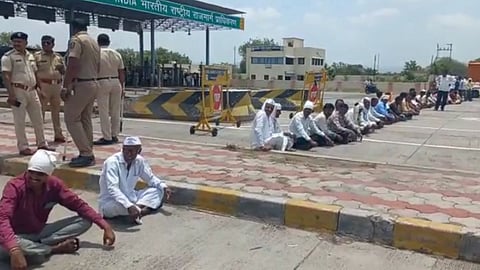 chhatrapati sambhaji nagar news : कांद्याच्या भावासाठी (onion pirce) शेतकरी रस्त्यावर उतरलेत. शेतक-यांनी कन्नड तालुक्यातील हातनूर टोल नाका जवळील धुळे-सोलापूर महामार्ग (dhule solapur highway) अडवला. कांद्याला योग्य भाव मिळत नसल्याच्या निषेधार्थ शेतकऱ्यांनी महामार्गावर ठिय्या मांडला आहे. सुमारे तासभर शेतकरी धुळे सोलापूर राष्ट्रीय महामार्गावर बसून हाेते. घटनास्थळी पाेलिसांचा माेठा बंदाेबस्त तैनात करण्यात आला आहे. (Maharashtra News)