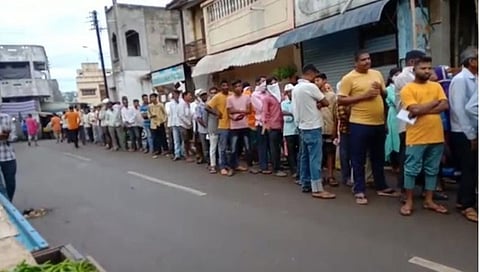 नंदुरबार : जिल्ह्यात यंदाच्या खरीप हंगामात पावसाचे प्रमाण अत्यंत कमी असल्याने पेरण्या कमी झाल्या आहे. असे असले तरी युरिया खत मिळवण्यासाठी शेतकऱ्यांनी सकाळी- सकाळी नवापूर शहरातील कृषी सेवा केंद्रासमोर रांगा लावल्याचे दिसून आले. (nandurbar-news-Farmers-have-been-queuing-for-urea-fertilizer)