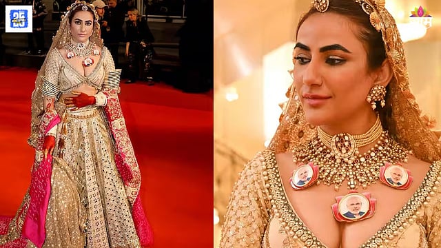 Cannes Film Festival 2025: कॅन्स फिल्म फेस्टिव्हल २०२५मध्ये भारतीय अभिनेत्री रुचि गुज्जरने आपल्या पारंपरिक पोशाख आणि देशभक्तीच्या प्रतीकांनी सजलेल्या लुकसह सर्वांचे लक्ष वेधले. तिने राजस्थानच्या पारंपरिक सोन्याच्या लेहंगासह पंतप्रधान नरेंद्र मोदींचा चेहरा असलेला खास नेकलेस परिधान केला होता, यामुळे तिच्या उपस्थितीला विशेष महत्त्व प्राप्त झाले.