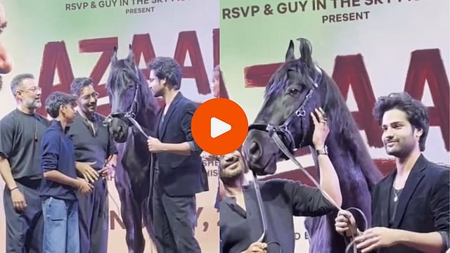 'आझाद' चित्रपटाच्या ट्रेलरने प्रेक्षकांची उत्सुकता शिगेला पोहचवली आहे. या चित्रपटाचे दिग्दर्शन अभिषेक कपूर यांनी केले आहे. या ट्रेलर लाँचचे व्हिडीओ आणि फोटो सध्या सोशल मीडियावर तुफान व्हायरल होताना पाहायला मिळत आहे. यातील एक व्हिडीओमध्ये चक्क चित्रपटातील कलाकर घोड्यासोबत फोटोशूट करताना पाहायला मिळत आहे. अजय देवगण घोड्यासोबत एन्ट्री घेतो. या चित्रपटात घोडा खूप महत्त्वाचा आहे.