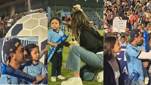 रणबीरची टीम 'मुंबई सिटी एफसी' आणि हैदराबाद एफसी यांच्यात शनिवारी (30 नोव्हेंबर)सामना रंगला. हा सामना पाहण्यासाठी आलियासोबत राहा देखील आली होती. सुरुवातीला व्हिडीओमध्ये राहा आलियासोबत खेळताना पाहायला मिळत आहे. तर नंतर आलिया, रणबीर आणि राहा एकत्र स्टेडियमवर फिरताना पाहायला मिळत आहेत. व्हिडीओमध्ये रणबीरने राहाला उचलून स्टेडियमवर फेरफटका मारताना दिसत आहे.