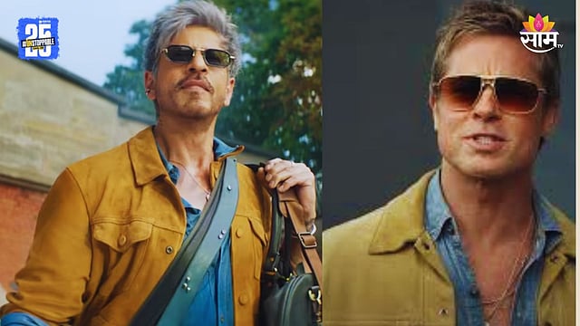 ब्रॅड पिटचा काही दिवसांपूर्वी 'एफ 1' चित्रपट रिलीज झाला आहे. चित्रपटातील एका सीनसाठी ब्रॅड पिटने ज्या रंगाचे शर्ट आणि पॅन्ट घातला आहे. तसाच सेम लूक 'किंग' चित्रपटात शाहरुख खानने केला आहे. निळ्या रंगाचे शर्ट आणि ब्राऊन रंगाचे जॅकेट, डोळ्यांना काळा गॉगल, हातात बॅग, स्टायलिश हेअर असा दोघांचा सेम लूक पाहायला मिळत आहे. नेटकरी सोशल मीडियावर शाहरुख खानच्या या लूकची तुलना करत आहे.