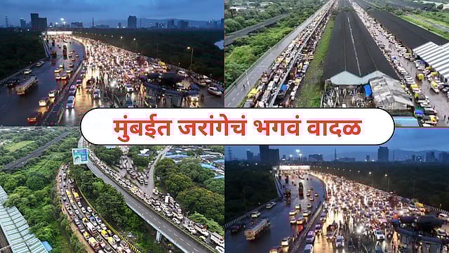 Manoj Jarange Patil: वाहनांच्या लांबच लांब रांगा अन् भगवे झेंडे; मुंबईत मराठ्याचं वादळं धडाडलं, पाहा Photo