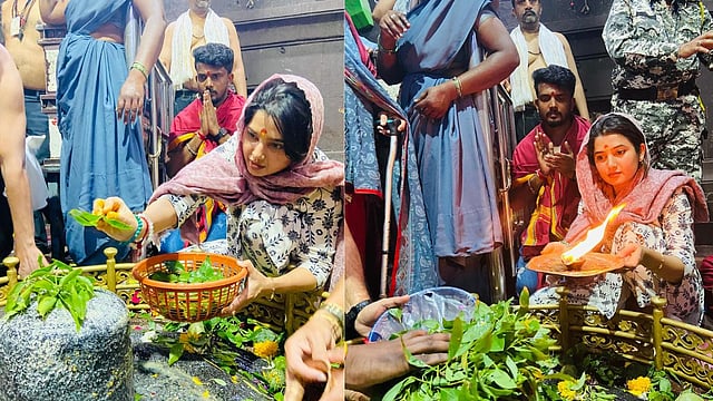 प्राजक्ताने शेअर केलेल्या फोटोंमध्ये ती शंकराला बेल वाहताना आणि पूजा करताना पाहायला मिळत आहे. तिच्या चेहऱ्यावर एक शांती आणि सुख पाहायला मिळत आहे.