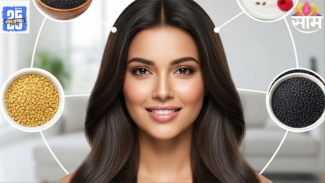 मेथीचे दाणे (Fenugreek Seeds): मेथीच्या बियांमध्ये प्रथिनांचे प्रमाण जास्त असते, ज्यामुळे केस जाड आणि मजबूत होतात. हे दाणे पाण्यात भिजवून सकाळी खाल्ले किंवा केसांसाठी मास्क म्हणून वापरले तर केसांची घनता वाढते.