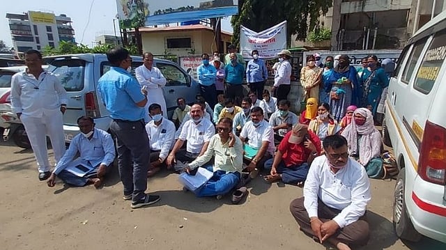 रायगड: राष्ट्रीय पेन्शन योजना बंद करून जुनी पेन्शन योजना सुरू करा, शिक्षकांच्या वेतनातील त्रुटी सोडवाव्यात, शिक्षणाधिकारी यांनी शिक्षकांच्या असलेल्या समस्या सोडवाव्यात या मागण्यासाठी आज अलिबाग येथे जिल्हा परिषदेसमोर जिल्हा माध्यमिक शाळेच्या शिक्षकांनी धरणे आंदोलन केले आहे. (agitation of secondary school teachers in front of alibaug Zilla Parishad for old pension scheme)
