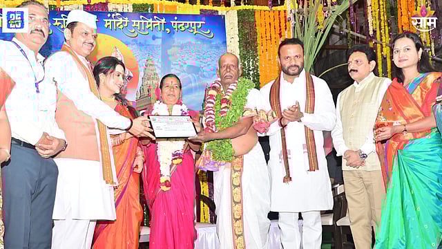 CM Devendra Fadnavis honors Nashik’s Ugale couple after Ashadhi Ekadashi Vitthal Puja at Pandharpur temple. Saam TV News Marathi