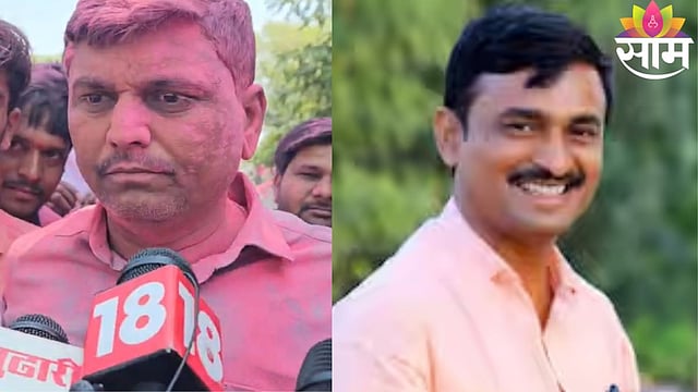 Swaroopanand Deshmukh celebrates victory after winning the Masajog Sarpanch election by 92 votes in Beed. saam tv