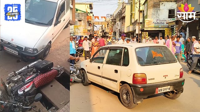 दरम्यान अपघातास कारणीभूत ठरलेली कार ही विरुद्ध दिशेने भरधाव येत होती. यावेळी दुचाकी चालक राधेश्याम मलेवार (वय ५०, रा. बहेवाडा) यांच्या दुचाकीला भरधाव कारने जोरदार धडक देत उडविले. यानंतर बावनकर चौकाजवळ उभ्या असलेल्या वैष्णवी राजकुमार भिवगडे (वय १५, रा. तुमसर) या युवतीला देखील धडक दिली. यामध्ये दोघेजण जखमी झाले आहेत. हा थरार सुरू असताना एकच धावपळ माजली. त्यानंतर ही कार रस्त्याच्या बाजूला थांबली.