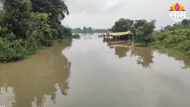 भंडारा जिल्ह्यात दोन दिवसापासून (Heavy Rain) मुसळधार पावसाने हजेरी लावल्यामुळे नदी- नाले ओसंडून वाहत आहेत. भंडारा जिल्ह्यातील जीवनदायी समजली जाणारी वैनगंगा नदी ही धोक्याच्या पातळीच्या वर वाहत आहे. भंडारा तालुक्यातील खमारी गावाजवळील छोटा पूल हा पाण्याखाली गेला असून जवळपास २५ गावांच्या संपर्क तुटला आहे. पलीकडे गावकऱ्यांना ये जा करायची असल्यास लांब फेऱ्यांनी जावे लागत आहे. पूर परिस्थितीमध्ये प्रशासनाच्या वतीने खबरदारी म्हणून या ठिकाणी पोलीस कर्मचाऱ्यांची नियुक्ती करण्यात आलेली नसल्याचा चित्र आपल्याला दिसत आहे.