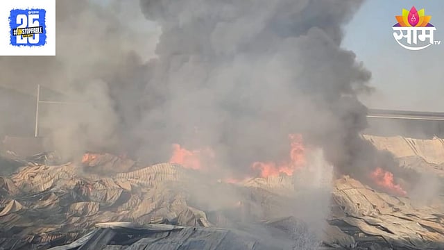 भिवंडी : मुंबई- नाशिक महामार्गालगत भिवंडी तालुक्यातील येवई गावच्या हद्दीत आर. के. लॉजिस्टिक गोदाम संकुलात पहाटे चार वाजताच्या सुमारास भीषण आग लागली. या भीषण आगीत तीन कंपन्यांची गोदामे जळून खाक झाली आहेत. आग मोठ्या प्रमाणात पसरली असून त्यावर नियंत्रण मिळविण्याचे काम सुरु असून आगीमुळे कंपनीचे मोठे नुकसान झाल्याचा अंदाज वर्तविला जात आहे.