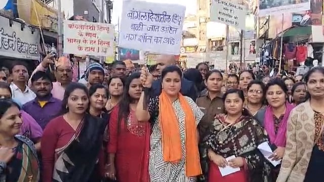 'बांगलादेशमध्ये हिंदू सुरक्षित नाही. तेथे अत्याचार होत आहेत. तिथं वकील सुद्धा देण्यात येत नाही. त्यामुळे बांगलादेश सरकारने 15 सेकंदासाठी त्यांची बॉर्डर उघडावी. या 15 सेकंदात त्यांची पात्रता दाखवून देऊ, अशा शब्दात भाजप नेत्या नवनीत राणा यांनी बांगलादेशला इशारा दिला. 'आमच्या भारत देशात एक वाघ जिवंत आहे. हा वाघ बांगलादेशची सफाई करेल, असा दम नवनीत राणा यांनी यावेळी भरला. जोरदार घोषणा आणि आक्रमक पद्धतीने हा मोर्चा करण्यात आला. अत्यंत शांततेत आणि शिस्तबद्ध पद्धतीने हा मोर्चा पार पडला.