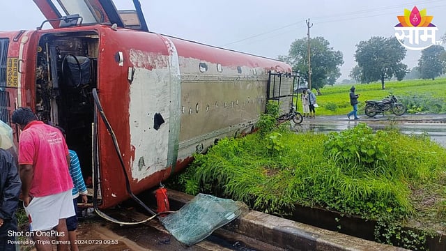 राष्ट्रीय महामार्ग क्रमांक ६ वर धरणगाव जवळील फौजी ढाब्या सामोर हा अपघात (Accident) झाला. राज्य परिवहन महामंडळाच्या खामगांव आगाराची बस (Khamgaon) खामगाव बसस्थानकावरून निघून शिर्डी कडे जाण्यासाठी मार्गस्थ झाली होती. दरम्यान बस राष्ट्रीय महामार्ग क्रमांक सहावर धरणगाव जवळील फौजी धाब्याजवळ अली असता बसचा अपघात (Bus Accident) झाला. समोरून येत असलेल्या वाहनाला वाचवण्याच्या प्रयत्नात बस चालकाचे नियंत्रण सुटून बस दुभाजकाला धडकली. यात बस पलटी झाल्याची माहिती मलकापूर आगार प्रमुख मुकुंद न्हावकर यांनी दिली आहे.