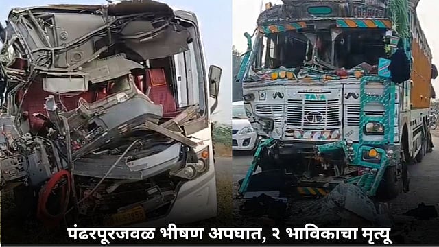 Pandharpur Accident News : सोलापूरमधील पंढरपूरजवळ भाविकांच्या खासगी भसचा भीषण अपघात झालाय. दुर्देवी घटनेत दोन भाविकांचा मृत्यू झालाय. यामध्ये काही प्रवासी गंभीर जखमी झाले आहेत. जखमींना जवळच्या रुग्णालयात उपचारासाठी दाखल करण्यात आलेय. भटुंबरे गावाजवळ आज पहाटे खासगी बस आण ट्रकचा भीषण अपघात (Devotees bus accident Pandharpur) झालाय. अपघात इतका भीषण होता की खासगी बसचा चुराडा झालाय. प्रवासाची माहिती मिळताच पोलीस घटनास्थळी पोहचले आहेत.