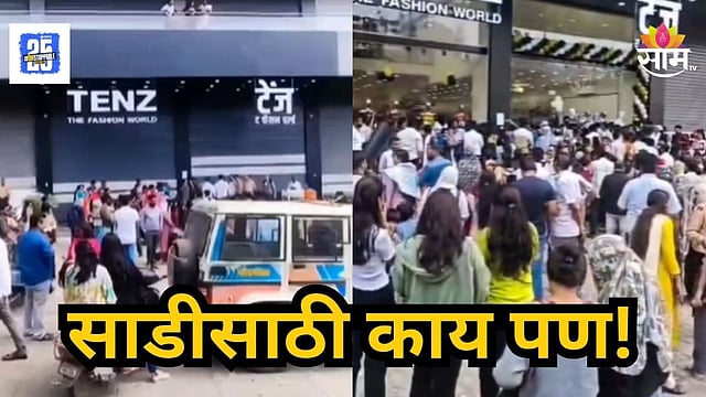 Chhatrapati Sambhajinagar Tenz Saree Centre News : छत्रपती संभाजीनगरच्या त्रिमूर्ती रोडवरील दुकानात ५ हजारांची साडी फक्त ५९९ रुपयांत मिळत असल्याच्या व्हायरल रीलमुळे महिलांची प्रचंड गर्दी झाली. चेंगराचेंगरीत ३ महिला बेशुद्ध पडल्या.