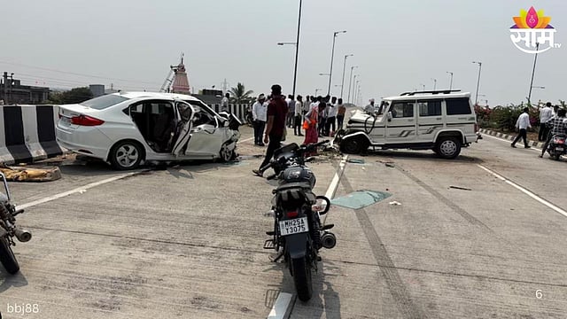 ही धडक इतकी भीषण होती की, बोलेरो गाडी पलटी झाली आणि दुभाजक ओलांडून पलीकडील लेनमध्ये गेली. या लेनवरून येणाऱ्या होंडा सिटी कारला बोलेरोवर जोरात आदळली. या तिहेरी धडकेत तिन्ही वाहनांचा चक्काचूर झाला आहे.