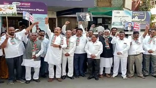 पंतप्रधान नरेंद्र मोदी यांनी उद्योगपती अदानी यांच्यावरती दाखवलेल्या मेहरबानीचा फटका सर्वसामान्य ठेवीदारांना बसत आहे. असा आरोप करत मोदी सरकारच्या उद्योजक धारजीनी धोरणा विरोधामध्ये धुळ्यात काँग्रेसचे पदाधिकारी व कार्यकर्ते चांगलेच आक्रमक झाल्याचे बघावयास मिळाले. धुळ्यातील एसबीआय बँकेसमोर काँग्रेसच्या पदाधिकारी व कार्यकर्त्यांनी आमदार कुणाल पाटील यांच्या अध्यक्षतेखाली मोदी सरकार विरोधामध्ये घोषणाबाजी करीत तीव्र निषेध आंदोलन केले आहे.