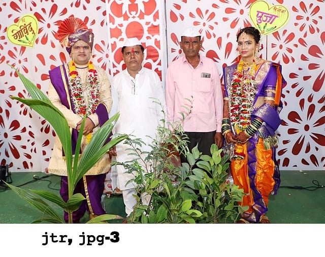 दोन दिवसापूर्वी (ता. तीन) शहरातील माऊली मंगल कार्यालयात पंढरीनाथ बुधवंत यांचा मुलगा गोविंद याचा विवाह अंबरवाडी येथील सुधाकरराव कांदे यांची मुलगी पूजा हिचा विवाह संपन्न झाला. दोघांच्या पालकांकडून अनावश्यक खर्चाला बाजूला सारुन पर्यावरणाचे संतुलन राखण्याहेतू नवदांम्पत्यास आंबा, चिंच, नारळ, फणस, रामफळ, सिताफळ, कवठ या उपयुक्त फळझाडांची तीस रोपे भेट देऊन पर्यावरणपूरक लग्न पार पाडले.