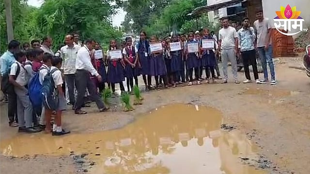 गोंदिया : कुंभारटोली - पाऊलदौना रस्त्याची अत्यंत दयनीय अवस्था झाली आहे. गेल्या अनेक वर्षांपासून मागणी करून देखील अद्याप रस्ता झालेला नाही. याचा त्रास विद्यार्थ्यांना रोजच सहन करावा लागतो. यामुळे संतप्त झालेलय विद्यार्थ्यांनी व नागरिकांनी आंदोलन करत रस्त्याच्या कामासाठी विद्यार्थ्यांनी खड्ड्यांमध्ये भात पिकाची लागवड केली.