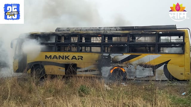 Bus Fire : धावत्या बसचे टायर फुटून भीषण आग; बसमध्ये होते २५ प्रवासी, जामनेरजवळची भयानक घटना