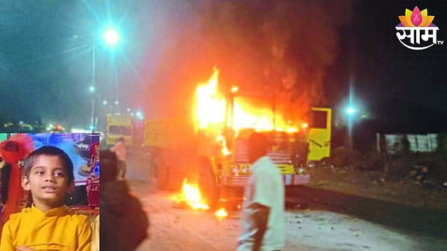 जळगाव : घरी मामा आल्याने बाहेरून चायनीज आणण्यासाठी निघाले होते. दुचाकीने जात असताना भरधाव वेगाने आलेल्या रेतीच्या डंपरने दुचाकीला धडक दिली. यात नऊ वर्षीय चिमुरड्याचा मृत्यू झाला. तर त्याची बहीण व मामा हे जखमी झाले आहेत. दरम्यान अपघात घडल्यानंतर संतप्त जमावाने डंपर पेटवून दिल्याची घटना बुधवारी सायंकाळी घडला आहे.