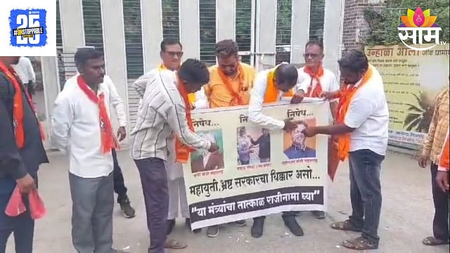 दुसरीकडे मंत्री गिरीश महाजन यांचे भाजपाचे नेते प्रफुल्ल लोढा याना हनी ट्रॅपमध्ये पॉक्सो अंतर्गत अटक झाली आहे. या सर्व कारणांमुळे कृषिमंत्री कोकाटे, गृहराज्यमंत्री कदम आणि जलसंपदा व आपत्ती व्यवस्थापन मंत्री महाजन यांनी तात्काळ राजीनामा द्यावा; अशी मागणी करत जोरदार घोषणाबाजी करण्यात आली. तर यावेळी कार्यकर्त्यांनी तिन्ही नेत्यांच्या प्रतिमेला चुना लावत निषेध व्यक्त केला.