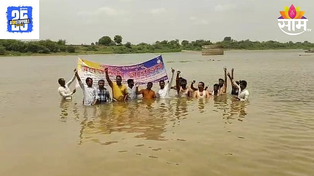 शेतकऱ्यांच्या विविध मागण्यासाठी जालन्यातील गोंदी येथील नदीपात्रामध्ये शेतकऱ्याने सामूहिक जलसमाधी आंदोलन सुरू केला आहे. जोपर्यंत प्रशासन आमच्या मागण्या मान्य करणार नाही; तोपर्यंत नदीपात्राच्या बाहेर येणार नाही असा पवित्रा आंदोलक शेतकऱ्यांनी घेतला आहे. यामुळे प्रशासन आता काय भूमिका घेणार हे पाहणे महत्वाचे ठरणार आहे.