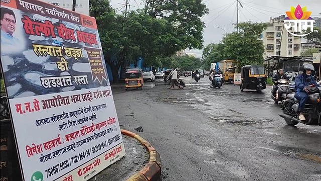 कल्याण (Kalyan) डोंबिवली शहरातील अनेक रस्त्यांवर खड्डे पडले आहेत. महापालिकेकडून खड्डे भरण्यास सुरुवात करण्यात आल्याचा दावा करण्यात आला असला तरी प्रत्यक्षातही काम संथ गतीने सुरू असल्याने या खड्ड्यांतून प्रवास करताना वाहन चालकांना मनस्ताप सहन करावा लागत आहे. या रस्त्यावरील खड्ड्यांबाबत आता मनसेने आक्रमक पवित्रा घेतला आहे. यात मनसेतर्फे (MNS) शहरातील चौका चौकात सेल्फी विथ खड्डा अशा आशयाचे उपहासात्मक बॅनर लावण्यात आले. तसेच मनसेने खड्डे दर्शन स्पर्धा आयोजित केली आहे.