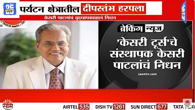 मुंबई : 'केसरी टूर्स'चे संस्थापक तथा अध्यक्ष केसरी पाटील याचं दु:खद निधन झालं आहे. आज पहाटे वृद्धापकाळानं त्यांचं निधन झालं. केसरी पाटील यांनी वयाच्या ५०व्या वर्षी 'केसरी टूर्स'ची स्थापना करुन जगविख्यात कंपनी म्हणून उदयास आणली. त्यांना पर्यटन क्षेत्रातील विद्यापीठ म्हणून संबोधलं जायचं. केसरी पाटील यांचं पार्थिव अंत्यदर्शनासाठी संध्याकाळी ४ ते ६ या वेळेत बांद्रे येथील त्यांच्या निवासस्थानी ठेवण्यात येईल. शिवाजी पार्क स्मशानभूमीत त्यांच्यावर अंत्यसंस्कर करण्यात येणार आहेत.