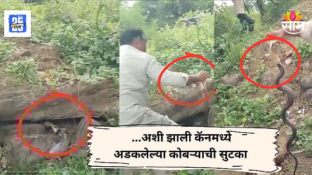 माकडाचं डोकं हंड्यात अडकलं, माणसाचा पाय कळशीत अडकला अशा बातम्या आपण ऐकत आलो आहोत. मात्र धुळे जिल्ह्यात सापाचं चक्क डोकं एका कॅनमध्ये अडकल्याचा व्हिडिओ व्हायरल होत आहे. दरम्यान सर्प मित्राने या कोब्रा सापाला अत्यंत हुशारीने रेस्क्यू केले आहे. हे सर्व दृश्य अंगावरती शहारे आणणारे आहेत.