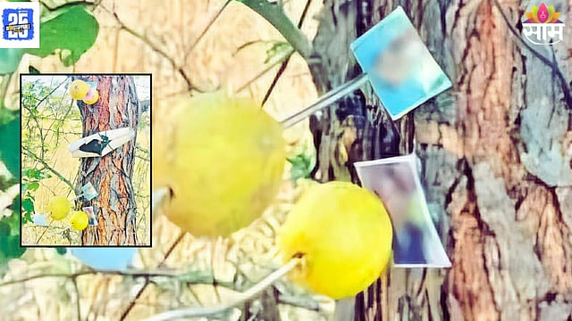 कोल्हापूर: येथील भुदरगड तालुक्यातील आकुर्डे- महालवाडी दरम्यानच्या कुरण शेतात अज्ञात व्यक्तीकडून अघोरी प्रकार करण्यात आल्याची धक्कादायक घटना उघडकीस आली आहे. स्थानिक तरुणांना या ठिकाणी एका बाभळीच्या झाडाला दाभणाने काही मुलींचे फोटो लटकवलेले आढळले. तसेच लिंबू, काळ्या बाहुल्या आणि अन्य साहित्याचा वापर करून जादूटोण्याचा प्रकार झाल्याचे निदर्शनास आले आहे. विशेष म्हणजे, एका युवतीच्या आई, वडील आणि आजीचे फोटोही झाडावर लावलेले होते.