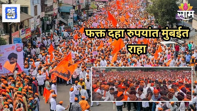 काल सकाळी मराठ्याचं भगवं वादळ हे मुंबईत दाखल झालं.मनोज जरांगे पाटील यांनी काल सकाळी आंदोलनाचा एल्गार केला. महाराष्ट्रातील गावाखेड्यातून हजारो मराठा आंदोलक मुंबईत दाखल झाले आहेत. दरम्यान, मराठा आंदोलकांचे काल खाण्यापिण्यासाठी आणि राहण्यासाठी खूप हाल झाले. कुठे राहायचं काय खायचं असा प्रश्न त्यांना पडलेला आहे. दरम्यान, आता यावर एक शक्कल शोधून काढली आहे. 'फक्त १० रुपयांत मुंबईत राहा मोफत' असा एक मेसेज सध्या व्हायरल होत आहे. तुम्ही १० रुपयांत मुंबईत राहू शकतात, असं या मेसेजमधून सांगण्यात आले.