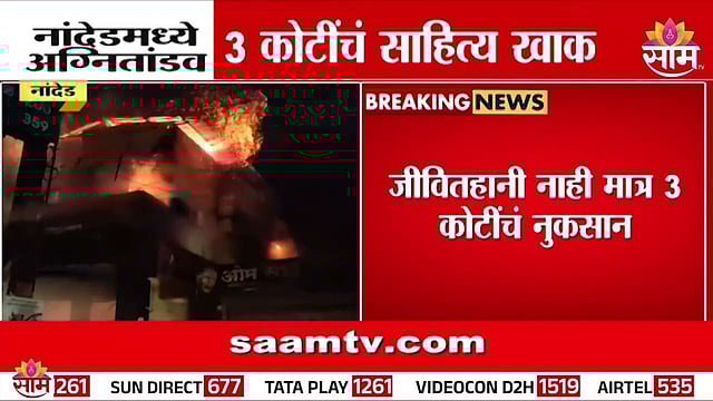 Nanded Fire News : नांदेड शहरातील हिंगोली गेट परिसरात पंपटवार किराणा सुपरमार्केटमध्ये अचानक भीषण आग लागली. या आगीत कोट्यवधी रुपयांचे साहित्य जळून खाक झाले. सोमवारी मध्यरात्री रात्री ही आग लागली होती . आग इतकी भीषण होती की संपूर्ण दुकान आणि घराला अगीने वेढले होते. आग विझवण्यासाठी अग्निशामन दलाच्या १८ गाड्या कार्यरत होत्या. आगीमध्ये तीन कोटी रूपयांचे नुकसान झाल्याचे समजतेय.