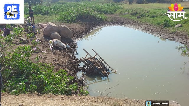 बैलगाडी पुलावरून खाली कोसळली. यात नदीत पाणी असल्याने शेतकरी पुलाच्या पाण्यातून कसा बसा बाहेर निघाला. तर नागन्ना कोतुळगाव हा अपंग शेतकरी या गंभीर घटनेतून बालबाल बचावला आहे. मात्र अपघातात एका बैलाचा मृत्यू झाल्याने शेतकऱ्याचे मोठे नुकसान झाले आहे.