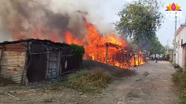 नांदेडच्या (Nanded News) अर्धापूर तालुक्यातील लहान तांडा येथे आज सकाळी दोन घराला अचानक आग लागली. आगीने अचानक रौद्र रूप धारण करत जवळ असलेल्या गोठ्याला आग लागली होती. कैलास राठोड आणि ललिताबाई आडे असे या आगीत नुकसान ग्रस्त शेतकऱ्यांचे नाव आहे. घरांना अचानक आग लागल्याने गावात एकच धावपळ सुरु झाली. ग्रामस्थांनी आग विझविण्याचा प्रयत्न केला. मात्र आग नियंत्रणात आली नाही. यामुळे दोन्ही घरांसह गोठा पूर्णपणे जळून खाक झाला होता.