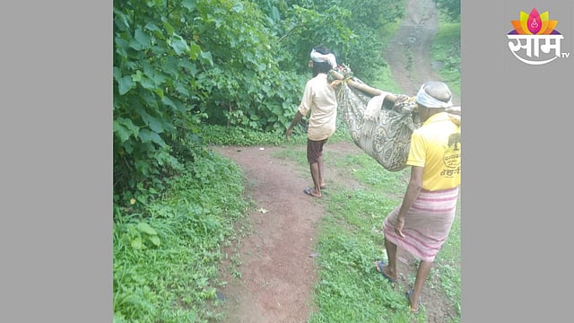 सुमित्रा विरसिंग वसावे असे गर्भवती महिलेचे नाव आहे. या महिलेच्या पोटात दुखत असल्याने तीला झोळी करून प्राथमिक आरोग्य केंद्र पिंपळखुटा येथे दाखल करण्यात आले. अक्कलकुवा तालुक्यातील वेहगी गावाचा मुख्य रस्तापासुन बारीपाडा, पाटीलपाडा येथे जाण्यासाठी पक्का रस्ता नाही. सदर पाड्यात जाण्यायेण्यासाठी खुप अडचणींचा सामना करावा लागतो. त्यामुळे पाड्यांमध्ये जातांना रस्त्यात मोठी दरी आहे. शिवाय नदी नाल्यामधुन जावे लागत असते. त्यामुळे शासनाने नंदुरबार जिल्ह्यात लक्ष द्यावा अशी मागणी आता होत आहे.