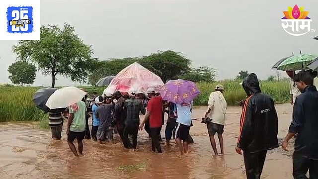 नंदुरबारच्या नवापूर तालुक्यातील एक विदारक चित्र समोर आले आहे. तालुक्यातील शेगवे गावात लोकांना त्यांच्या नातेवाईकांच्या अंत्यसंस्कारासाठी नदी पार करावी लागली. धक्कादायक बाब म्हणजे स्मशानभूमीत जाण्यासाठी पूल नाही, तसेच अन्य कोणताही मार्ग नसल्याने त्यांनी नदीतील वाहत्या प्रवाहाच्या पाण्यात उतरून नदी ओलांडली. अंत्यसंस्कारासाठी मृतदेह घेऊन जाताना कुटुंबीयांनी स्वत:चा जीव धोक्यात घातला आहे. हा भयावय घटनेचा व्हिडीओ समोर आल्याने संताप व्यक्त केला जात आहे.