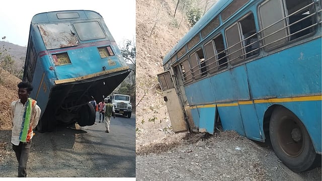 राज्य परिवहन महामंडळाच्या नंदुरबार विभागाच्या बसचा धडगाव ते शहादा रस्त्यावर काकरदा गावाजवळ देवबारी घाटात हा (Accident) अपघात आज सायंकाळी झाला. घाट रस्ता असल्याने वळणावर समोरून येत असलेले वाहन दिसत नाही. यात देवबारी घाटातील वळण रस्त्यावर समोरून अचानक दुचाकी आली. या दुचाकीला वाचविण्याचा प्रयत्न बस चालकाने केला. यामुळे बसवरील नियंत्रण सुटल्याने बस खोली नाल्यात गेली.