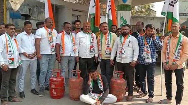 नंदुरबार शहरातील सुभाष चौक परिसरात असलेल्या पेट्रोल पंपच्या बाहेर घरगुती सिलेंडर ठेवून केंद्र सरकारच्या विरोधात जोरदार घोषणाबाजी करत आंदोलन केले आहे. घरगुती गॅस सिलेंडरचे पन्नास रुपये तर व्यवसायिक सिलेंडरचे ३५० रुपये दर वाढवण्यात आले आहेत. सिलेंडरचे दर वाढल्याने घराच्या आर्थिक गणित कोडमोडत आहे.