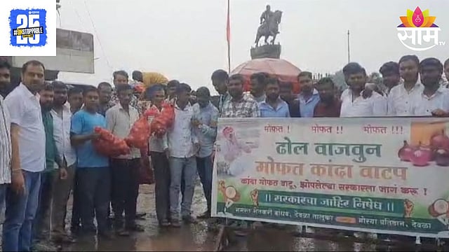 नाशिक : कांद्याच्या दरात सातत्याने घसरण होत आहे. यामुळे कांदा उत्पादक शेतकरी हवालदिल झाला असून कांदा दर वाढीची मागणी केली जात आहे. मात्र शासनाकडून कोणताही निर्णय होत नसल्याने शेतकऱ्यांमध्ये असंतोष आहे. तर देवळा येथे शेतकऱ्यांकडून अनोखे आंदोलन करण्यात आले असून ढोल वाजवत मोफत कांद्याचे वाटप यावेळी करण्यात आले.