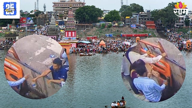 या ठिकाणी बॅरिकेटिंग लावून बिव्हीजी कंपनीचे कंत्राटी सुरक्षा रक्षक नेमण्यात आलेले आहेत. मात्र हेच सुरक्षारक्षक नदीतील पाणी भाविकांना तीर्थ म्हणून विकत आहेत. त्याचा व्हिडिओ व्हायरल होतोय.