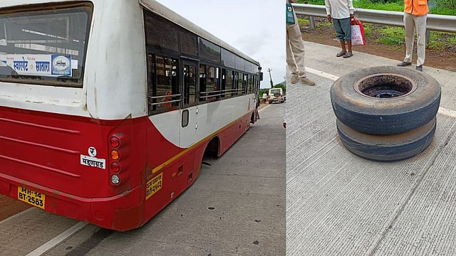 बसचे मागचे चाक अचानक निखळले. यावेळी धावत्या बसच्या पुढे चाक गेल्याने अनेकांच्या काळजाचा ठोका चुकला होता. परंतु, बस चालकाचे प्रसंगावधान म्हणा की प्रवाशांचे सुदैव या अपघातामध्ये कोणातीही जीवीत हानी झाली नाही.