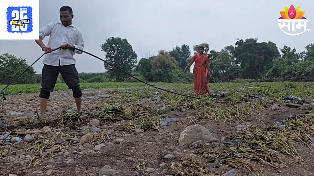 छत्रपती संभाजीनगर जिल्ह्यातील सिल्लोड तालुक्यातील धावडा गावातील अल्पभूधारक शेतकरी गणेश बनकर याची मुसळधार पावसाने अर्धी शेती वाहून गेली आहे. तर उर्वरित पीक जमीनदोस्त झाले आहे. गणेश बनकर यांची अडीच एकर शेती असून या शेतात एक एकर चवळी आणि दीड एकर कोबीची लागवड केली होती. मात्र अतिवृष्टीमुळे आणि महापुरामुळे होत्याचं नव्हतं झालं.