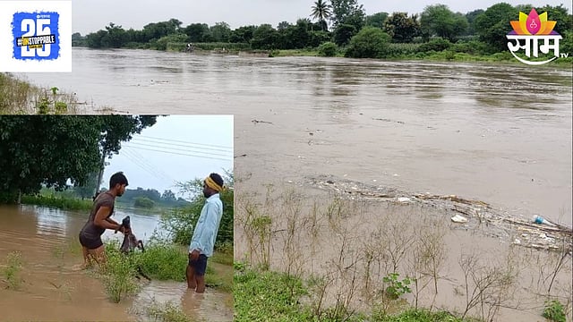छत्रपती संभाजीनगर : संभाजीनगर जिल्ह्यात मुसळधार पावसाने झोडपून काढले आहे. त्यातच पैठण तालुक्यात अतिवृष्टी झाली असून शनिवारी मध्यरात्री दीडच्या सुमारास झालेल्या मुसळधार पावसामुळे चांगलाच हाहाकार माजवला. यात पंथेवाडी येथे दोन मेंढपाळांच्या ५४ शेळ्या, मेंढ्यांसह एक बैल, दोन गोन्हे व संपूर्ण संसारोपयोगी साहित्य आलेल्या पुरानै गोदावरील नदीत वाहून गेले आहे. यामुळे मेंढपाळाचे लाखो रुपयांचे नुकसान झाले आहे.