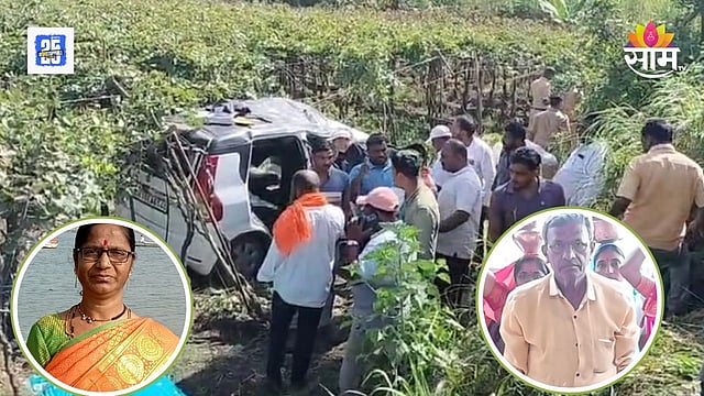 Sangli Tasgaon accident scene where grandparents and a grandson lost their lives in a horrific car-bike collision. Saam TV Marathi News