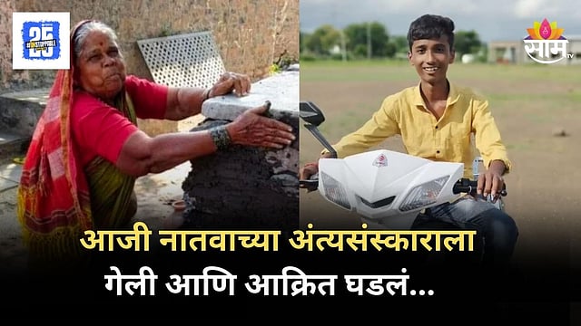 आजी म्हणजे नातवंडांची दुसरी मैत्रीणच. मात्र याचं नात्याबद्दल मन पिळवटून टाकणारी घटना घडली आली आहे. अक्कलकोट तालुक्यातील हन्नूर गावात एकाच दिवशी नातवाचा अपघाती मृत्यू झाला. नातवाला निरोप देताना त्याच स्मशानभूमीत अंत्यसंस्कारावेळी आजीने प्राण सोडल्याची घटना घडली आहे. एकाच दिवशी एका घरात दोघांचा मृत्यू झाल्याने कुटुंबावर शोककळा पसारली आहे.