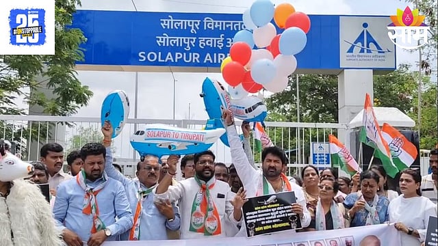 सोलापुरात साकारण्यात आलेल्या विमानतळावरून विमानसेवा सुरु होण्याची अद्याप प्रतीक्षा आहे. सोलापूर विमानसेवेचे वारंवार आश्वासन देऊनही विमानसेवा चालू न करता वारंवार सोलापुरकरांच्या भावनेशी खेळणाऱ्या भाजप केंद्र आणि राज्य सरकार विरोधात काँग्रेस पक्षाच्या वतीने जोरदार निदर्शने करण्यात आली. खासदार प्रणिती शिंदे यांच्या मार्गदार्नखाली आजचे आंदोलन करण्यात आले आहे.